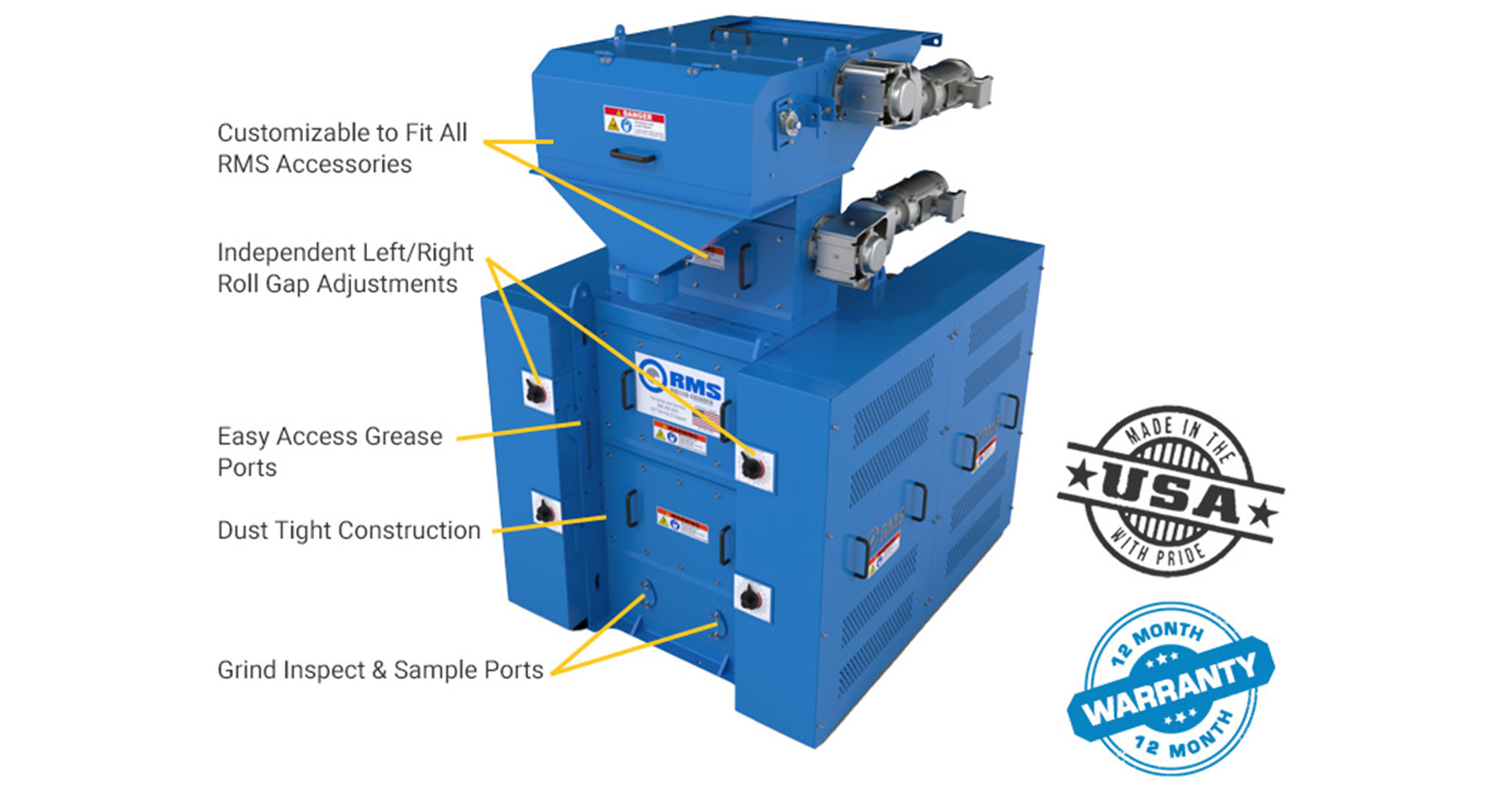 The VersaMill® is an advanced industrial roller mill from RMS. As a direct-drive roller grinder, it provides greater control of your desired particle size. The VersaMill® comes in similar sizes and capacities to our standard roller mills but includes several special features to maximize your grinding efficiency and productivity.
