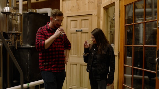 Liz and Mitch take us into the back, sampling from the current run, and then out on to the farm to meet the pigs. We also visit the Sugar Shack—the cocktail tasting room where they also produce maple syrup from sap.