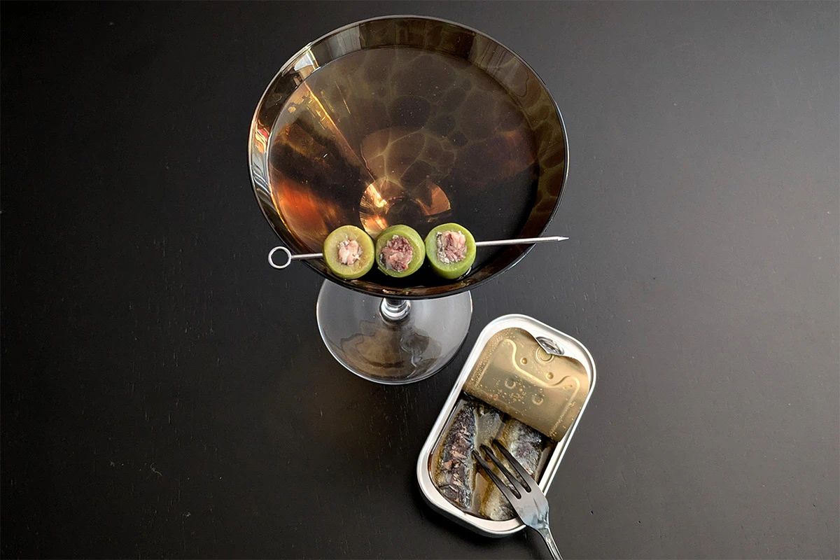 At last: a 50/50 martini, combining extra-dry sherry and dry vermouth, to pair with sardines! This tinned fish trend isn’t just about novelty—it’s about unlocking new layers of flavor and making every martini an adventure for the palate.