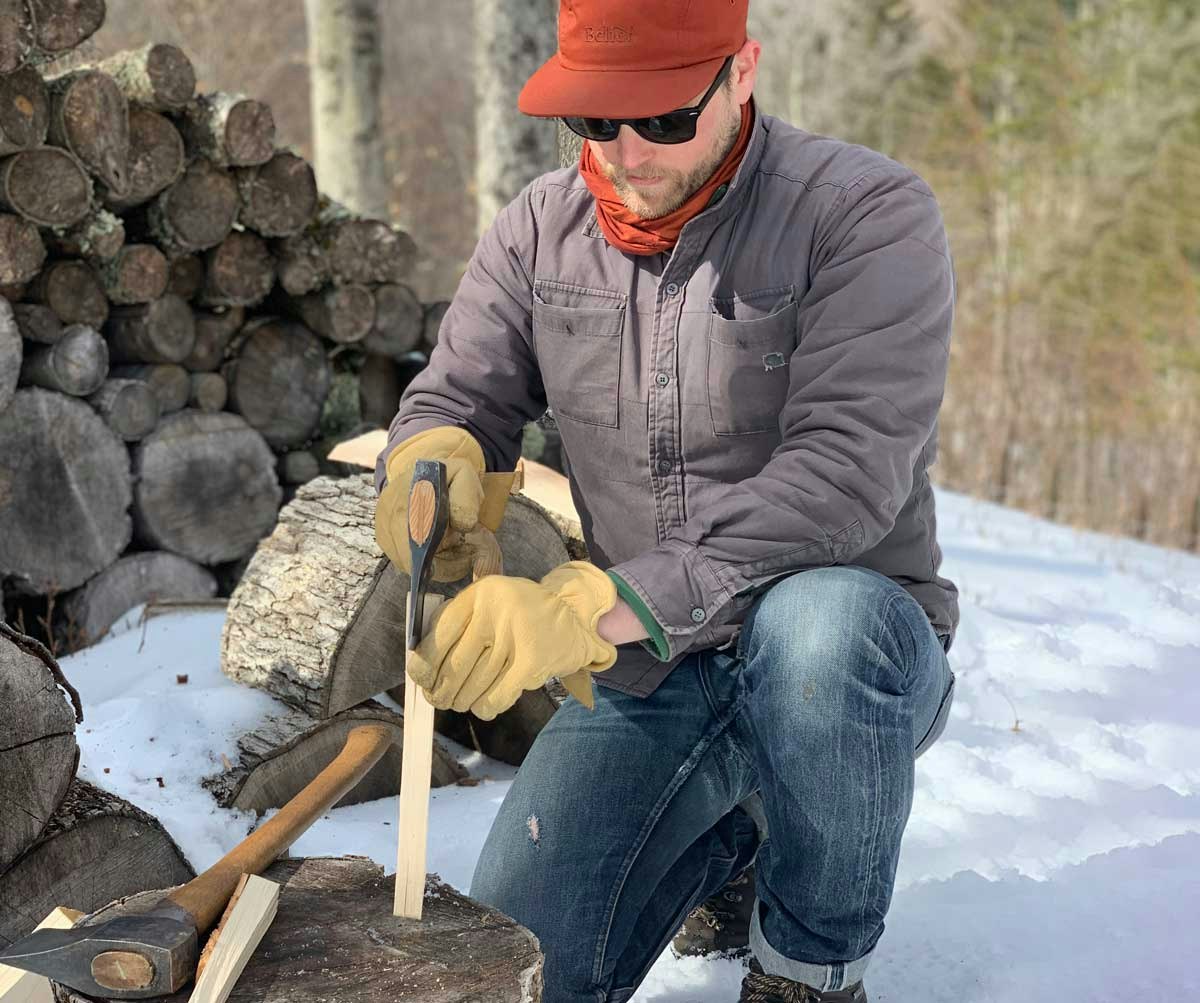 That batch size requires as much as 1,000 split pieces of wood, which Drucker equates to maybe three armfuls of firewood. The pieces of wood are slim and about five inches long. “They offer such high surface area, you don’t need much,” he says.