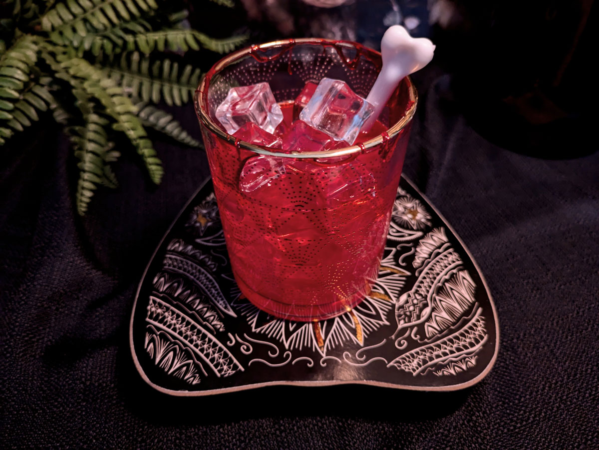As much as I love cranberry, this cocktail also needs a Halloween kick, so I add ginger, cinnamon, and black sesame. Black sesame has a nutty, earthy, and slightly bitter flavor, which is a perfect addition to the sweetness of the vodka and honey. The ginger adds a bit of zing, and the cinnamon brings the fall vibes. I also chose beetroot powder for its deep, blood-red color, which adds a bit of earthiness but not much flavor. This drink has been a staple in my Halloween repertoire for years, turning many skeptics into happy victims.